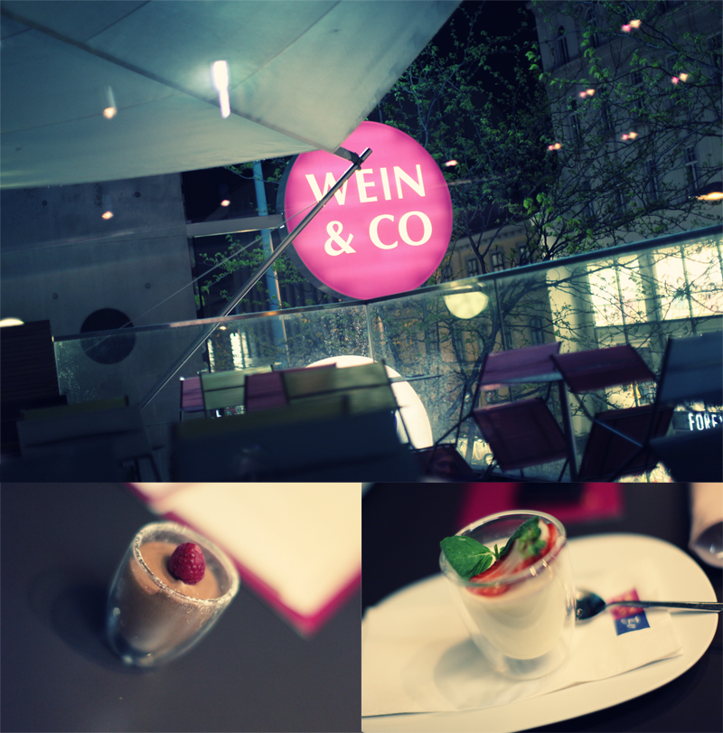 Da wir gerade soviel Spaß hatten und uns sehr gut unterhielten, wechselten wir die Location und fuhren noch auf die Mariahilferstrasse zum Wein&Co. Ich finde das System bei Wein & Co echt super. Man kann aus über 2000 Weinen im Shop wählen und ihn zum Shoppreis an der Bar trinken, man muss lediglich eine Flasche Wasser dazu bestellen. Wir gönnten uns neben einem leckeren Rotwein, noch eine kleine Nachspeise. Es war ein echt super Abend, mit lieben Leuten und gutem Essen und irgendwie war es auch gleich eine Einstimmung auf unseren Kurztrip nach Kroatien in ein paar Wochen.