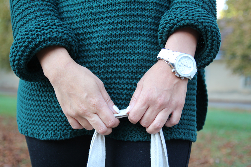 Dieses dunkle Grün ist momentan meine absolute Lieblingsfarbe. Egal wohin ich shoppen gehe, ich greife in der letzte Zeit immer nur zu dieser Farbe. Ich finde dieses schöne Grün einfach perfekt für den Herbst. Diesen Pullover von Zara schmachte ich schone eine halbe Ewigkeit an und letzte Woche habe ich dann endlich zugeschlagen. In Kombination mit einer schwarzen Skinny Jeans wirkt dieser Pullover einfach so toll und er ist so angenehm, dass ich ihn am liebsten gar nicht mehr ausziehen wollte. Mein Freund bestand an diesem Abend darauf, dass ich einmal wieder hohe Schuhe anziehe und so ging ich seinem Wunsch nach und schlüpfte in meine schwarzen klassischen Pumps.