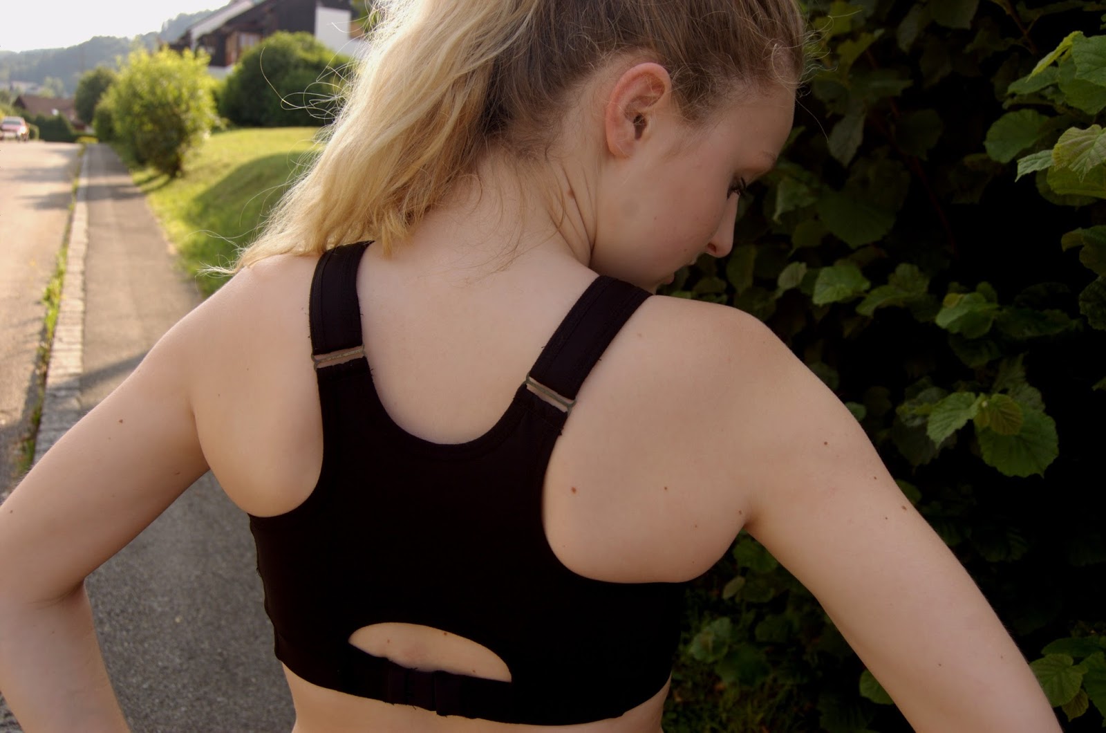 der Sport BH: Laufen ist eine wirklich harte Belastung für die Brust und auch das Drüsen- und Bindegewebe, daher sollte die Wahl eines Sport BHs nicht zu schnell getroffen werden. Ich persönlich mag dünne Träger bei Sport BHs eher weniger, weil sie einfach nicht so viel Stabilität geben. Wichtig ist, dass der Träger Längenverstellbar ist, und noch besser auch der Unterbrustumfang des ganzen BHs. Bei meinem Modell ist sogar vorne noch ein Reißverschluss – gibt wirklich extrem viel Halt und der Preis war auch optimal (20€ bei H&M)!