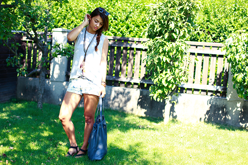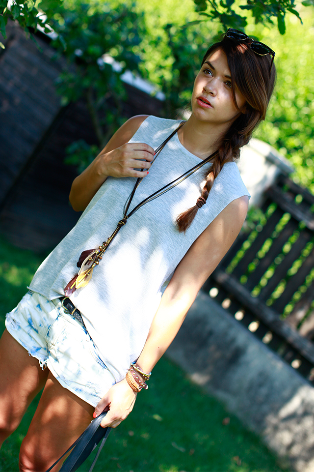 An solchen Tagen reichen kurze Shorts und ein luftiges Shirt. Ich trage ja eigentlich nur selten Schmuck, aber bei diesem Outfit musste es einfach sein. Auch die langen Haare müssen bei diesen Temperaturen zu einem Zopf oder noch besser zu einem Dutt zusammengebunden werden. Auch dieses Wochenende werden in Wien Temperaturen bis zu 37 Grad erwartet also schnappt euch eure liebsten und ab ins Bad oder an den See. In diesem Sinne wünsche euch ein schönes Wochenende und genießt die heißen Tage, der Winter kommt schneller wieder als gewollt.